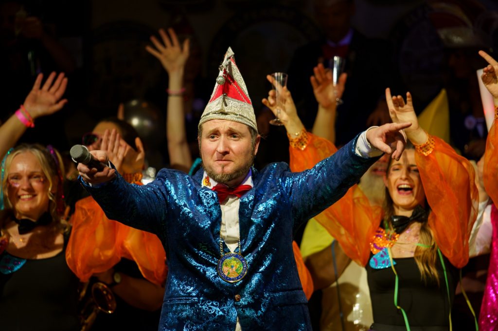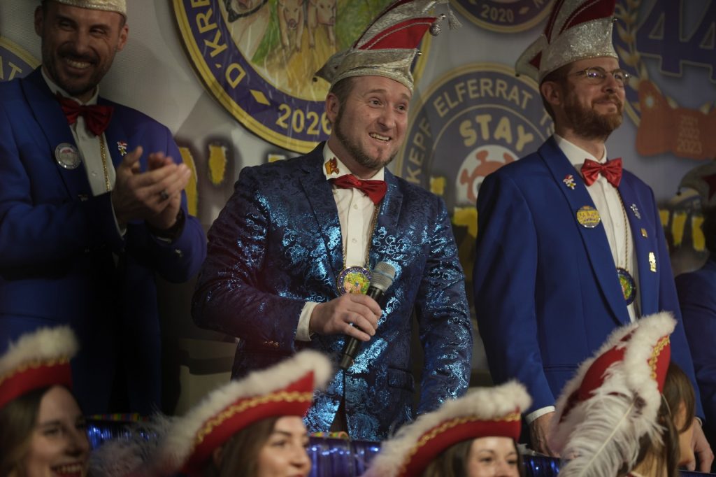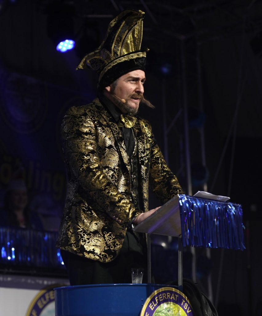 Gewohnt uncharmant, mit dreckigen Schuhen und goldener Robe traf der Sitzungspräsident des WDC alias Alexander Mergl in der Bütt ein- und das trotz KI-gestützter Warnung vor Extremwetterlage (windstill) mit den Worten „Ich kam hier an, trotz Hysterie, traue niemals der KI“. Ein beliebtes Thema im Ortsgeschehen war natürlich auch die Nikolausfahrt des Bulldog Vereins, bei der Bürgermeister Özcan wegen fehlender Größe vom Nikolaus zum Weihnachtswichtel degradiert wurde. Auch die Weltpolitik kam nicht zu kurz. Bei Trump und Putin fiel ihm auf: Vielleicht sollte man in Zukunft vermeiden, dass alte Männer noch Wichtiges entscheiden.