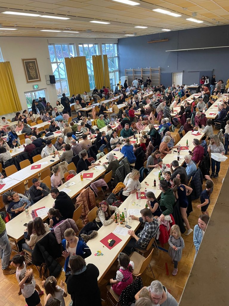 Wie jedes Jahr kam auch der Nikolaus persönlich vorbei und brachte für alle Kinder kleine Geschenke mit. Gemeinsam mit ihm wurde sogar noch ein Lied angestimmt, das die Kinder begeistert auf der Bühne mitsangen – ein besonderer Moment für Groß und Klein.
