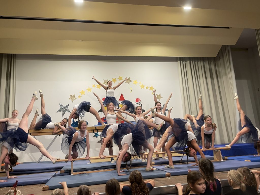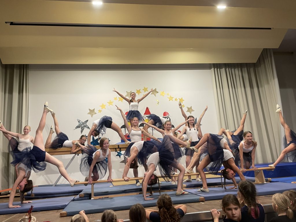 Die Trainerinnen und Trainer hatten mit den Kindern liebevoll vielfältige Darbietungen einstudiert. Die Tanzgruppen Tanzmäuse, 7ups und Teendance begeisterten unter der Leitung von Elisa Biro und Sophia Bohmüller mit wunderschönen tänzerischen Auftritten. Turnerisch wurde der Nachmittag von den Gruppen des Eltern-Kind-Turnens (Julia Dittes und Jana Kaiser), der Kigaturngruppe (Claudia Philipp mit Jara und Maria) sowie der Mädchenturngruppen (Claudia und Lara Philipp mit Magdalena) gestaltet. Musikalische Beiträge zu Beginn sorgten zusätzlich für eine feierliche Einstimmung auf die Weihnachtszeit.