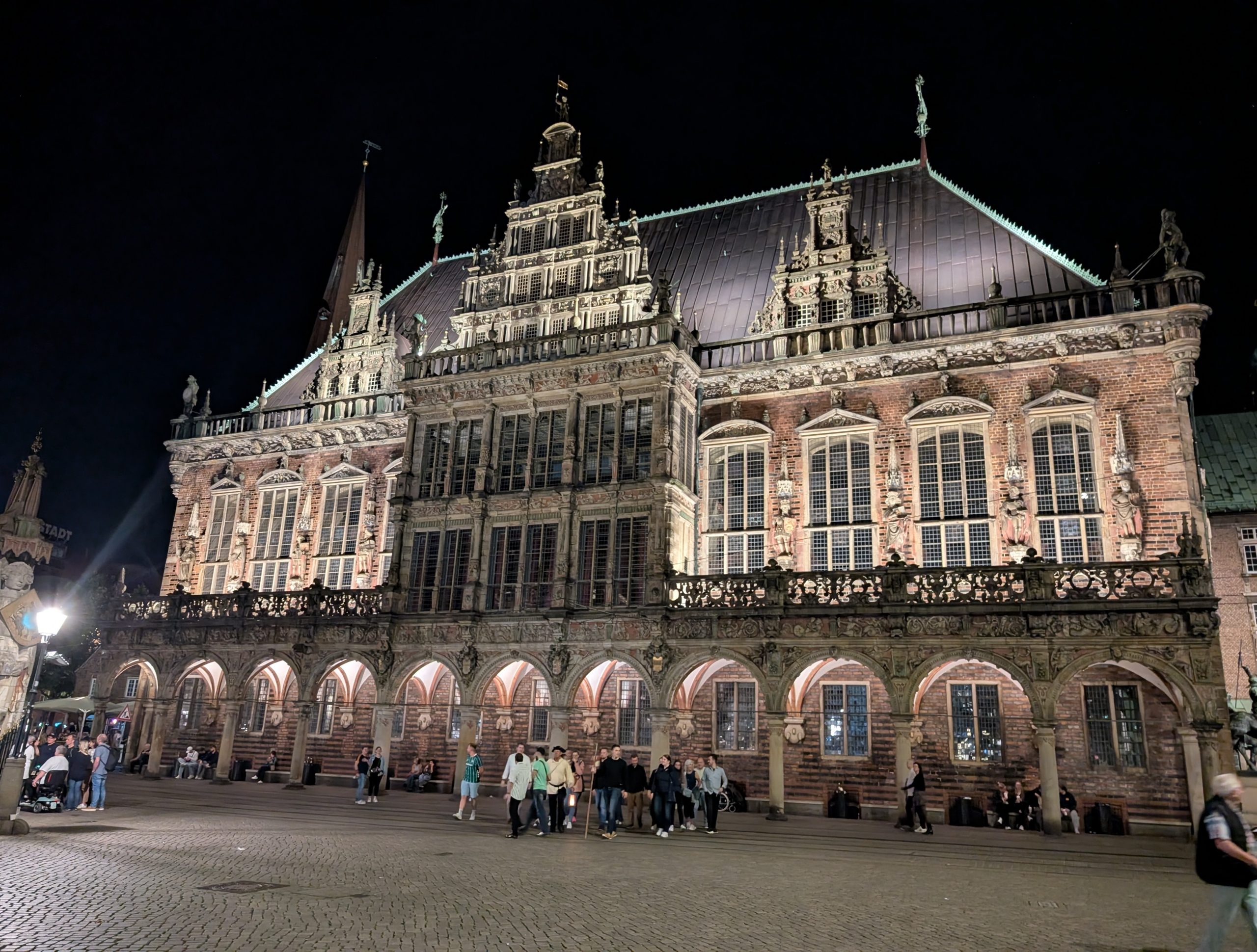 Bei unerwartet schönem Reisewetter waren wir mit 13 TT-lern (mit Anhang) drei Tage (20. – 22.9.2025) mit der Deutschen Bahn unterwegs, die Hansestadt Bremen zu erkunden. Eine Fahrt erster Klasse und ein 4-Sterne Hotel waren gebucht. Belohnung für „überragende“ Tischtennis Runde muss sein.
