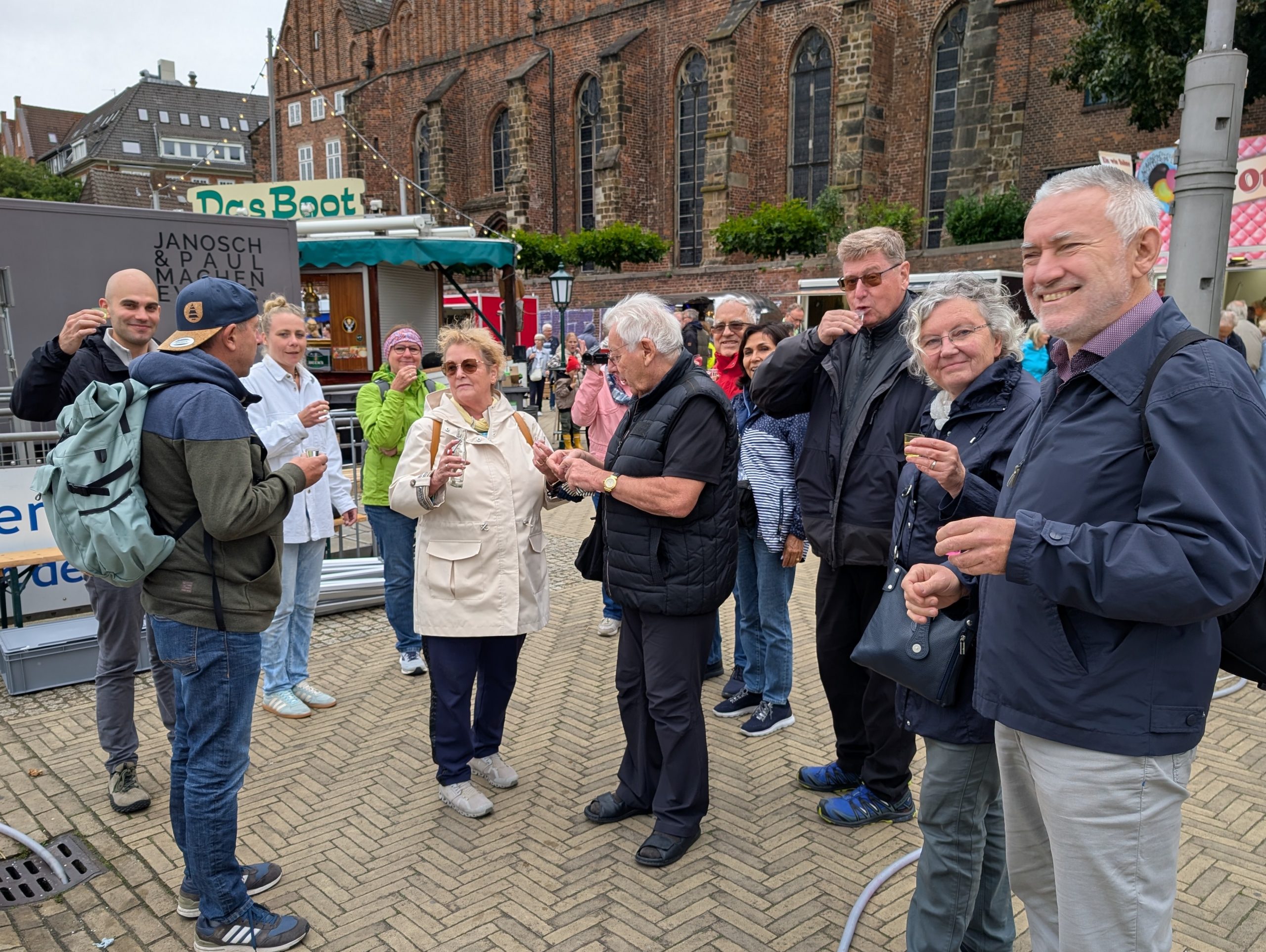 Unser aktiver TT Kamerad Hans-Peter Kratz hatte als Organisator und Reiseleiter vor Ort wie jedes Jahr ein abwechslungsreiches Programm vorbereitet. Bremen wurde ausgiebig erkundet. Zum einen recht gemütlich mit dem „Bremer Stadtmusikanten Express“ und einer Hafenrundfahrt auf der Weser. Und zum anderen aber auch zu Fuß bei einer super kurzweiligen Stadtführung, bei der wir auch die verborgenen Ecken der Stadt, wie z.B. das Rathaus von Innen oder die Schnoor, zu Gesicht bekamen. Ein Highlight war sicherlich die hanseatisch-humorvolle Führung durch die Kaffee-Rösterei Lloyd (ehemaliges Gelände von Kaffee HAG), inklusive Vorführung einer Kaffeeröstung mit Kaffee-Verkostung.